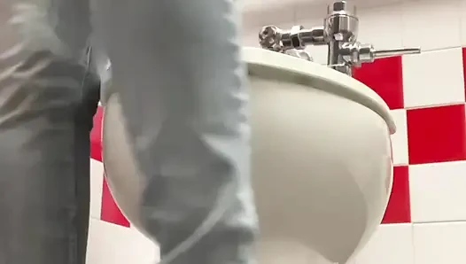 공공 화장실에서 내 섹시한 후장으로 오줌 싸고 괴롭히는