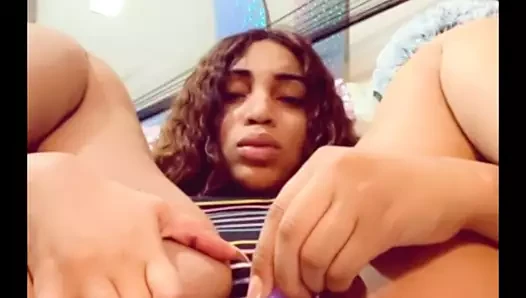 그녀의 엉덩이에 딜도로 보지를 놀리다
