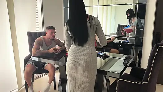 남편이 집에 없는 동안 낯선 사람 두 명과 섹스하는 거대한 엉덩이 라틴계