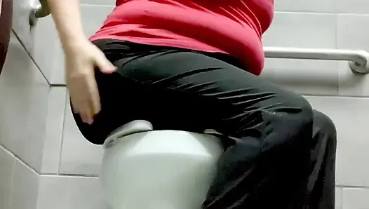 공공 화장실에서 내 섹시한 후장으로 오줌 싸고 괴롭히는