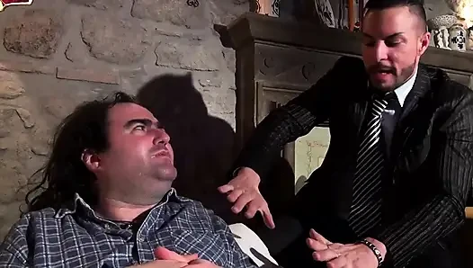 큰 자지를 빨아주는 남자와 자지를 빨아주는 갈색 머리