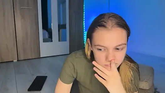 그녀는 스스로 기름을 흘렀고 문지르는 동안 그녀는 흥분하고 자위를 시작했습니다.