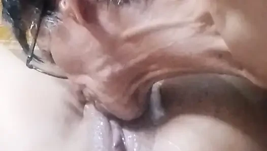 나는 아내의 가슴을 잡고 잡았다. 나는 그의 몸 전체를 핥아.