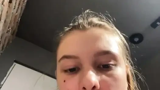 라텍스를 입은 금발 소녀와 핑거링하는 핑크 보지